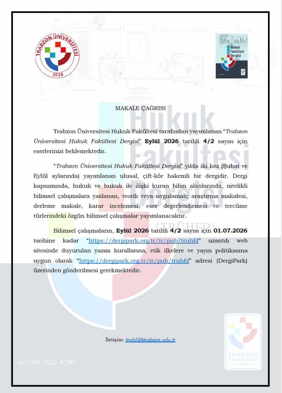 Trabzon Üniversitesi Hukuk Fakültesi Dergisi Eylül 2026 Sayısı İçin Makale Çağrısı